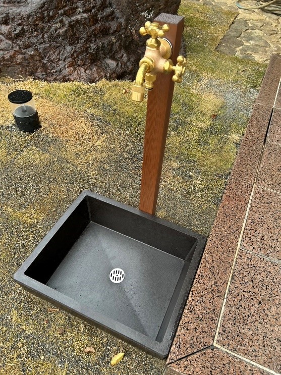ガーデニング用水栓パン GARDENING FAUCET PAN ガーデニング用水栓パン 庭の水栓に欠かせない水受けをレジンコンクリートで製作しました。ガーデニング用水栓パンによく用いられるFRPやPP、ステンレスなどに比べて重量があるので強風で飛ばされることもなく、割れや欠け、変形にも強いです。形状は四角形や丸形のシンプルなものから、八角形や舟形、星形といった複雑なものまであります。カラーバリエーションも多様で、白や黒、グレーなどがあります。 株式会社水生活製作所(https://www.mizsei.co.jp/)と共同開発