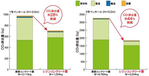 圧縮強度や曲げ強度が高いため、薄肉・軽量化を実現し、重機の小型化や掘削土量の減量が可能になります。このことは、製造・輸送・設置の工程において、鉄筋コンクリート製品に比べてCO2排出量を大幅に削減できます。